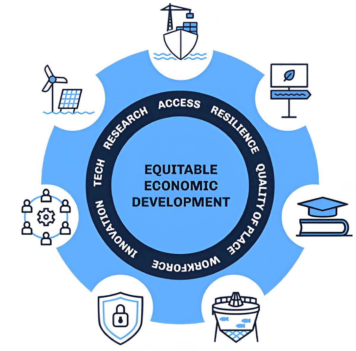 The United States’ Blue Economy continues to grow at a rate twice as fast as the national economy, presenting an opportunity for coastal communities to capture an increasing share of jobs, businesses, and overall productivity. This dynamic sector encompasses a wide range of enterprises—from fishermen and conservation laboratories to innovative aquaculture researchers and offshore wind turbine manufacturers. As America’s Blue Economy clusters expand and evolve together, these geographic regions are becoming increasingly influential, driven by rising productivity and specialized expertise in research, production, and technology.